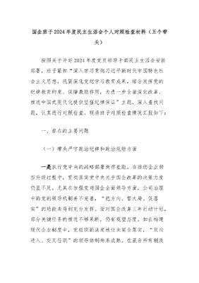 国企班子2024年度民主生活会个人对照检查材料(五个带头).docx