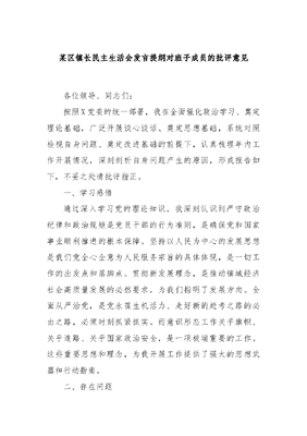 某区镇长民主生活会发言提纲对班子成员的批评意见.docx