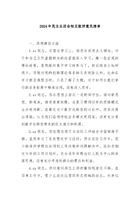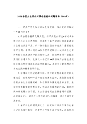 2024年民主生活会对照检查材料问题清单(90条).docx