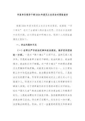 市直单位领导干部2024年度民主生活会对照检查材.docx