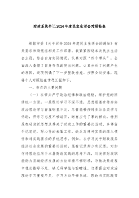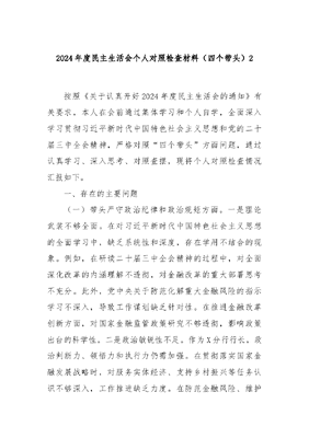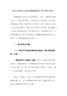 2024年度民主生活会对照检查材料(四个带头+例子).docx