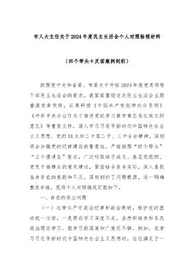市人大主任关于2024年度民主生活会个人对照检视材料(四个带头+反面案例剖析).docx