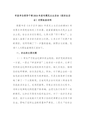 市直单位领导干部2024年度专题民主生活会(组织生活会)对照检查材料.docx
