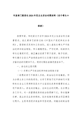 市直部门副局长2024年民主生活会对照材料(四个带头+保密).docx
