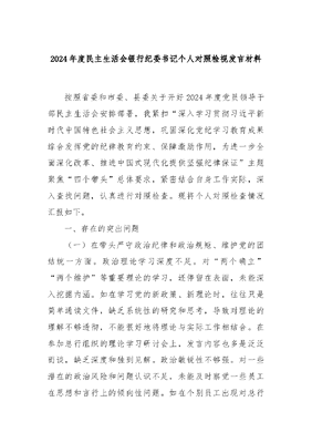 2024年度民主生活会银行纪委书记个人对照检视发言材料.docx