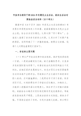 市直单位领导干部2024年专题民主生活会、组织生活会对照检查发言材料(四个带头).docx