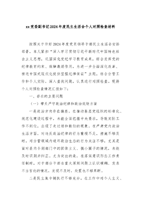 xx党委副书记2024年度民主生活会个人对照检查材料.docx
