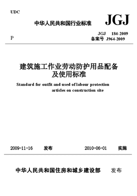 JGJ184-2009 建筑施工作业劳动保护用品配备及使用标准.docx