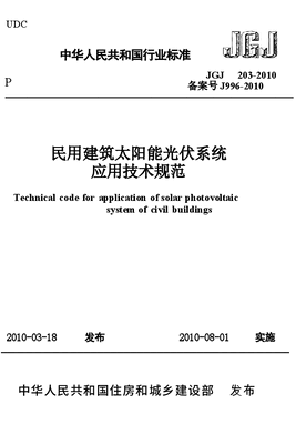 JGJ203-2010 民用建筑太阳能光伏系统应用技术规范.docx