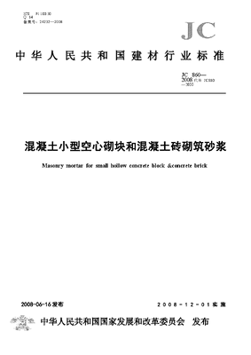 JC860-2008 混凝土小型空心砌块和混凝土砖砌筑砂浆.docx