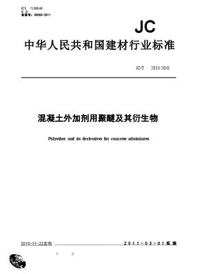 JCT2033-2010 混凝土外加剂用聚醚及其衍生物.doc