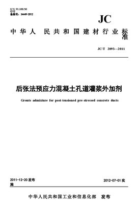 JCT2093-2011 后张法预应力混凝土孔道灌浆外加剂.docx