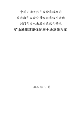 四川省四川盆地剑门气田双鱼石南天然气开采矿山地质环境保护与土地复垦方案.docx