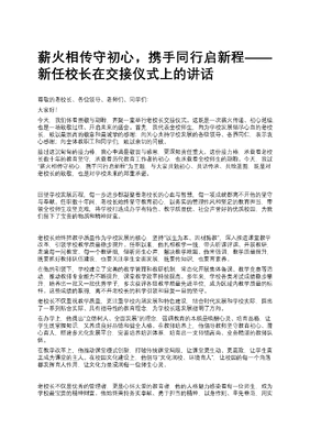 薪火相传守初心,携手同行启新程——新任校长在交接仪式上的讲话.docx
